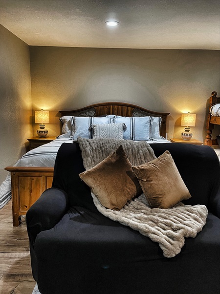 - The lower level provides a King sized bed and a set of bunk beds along with a full laundry room.